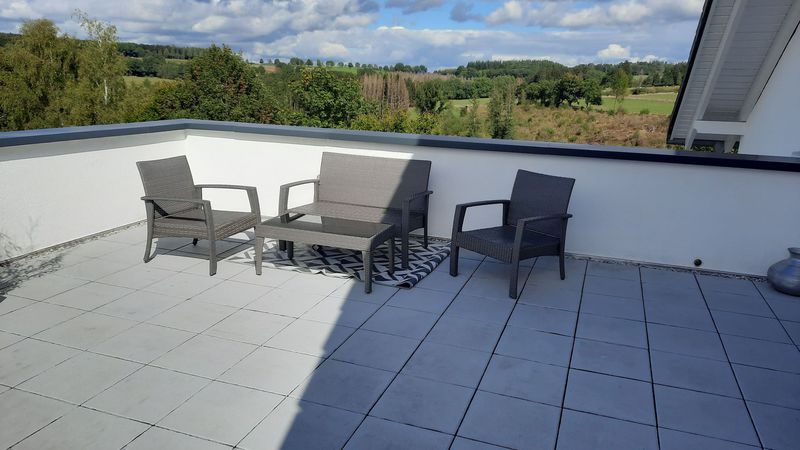 Dieses geräumige Haus bietet auf der oberen Etage drei großzügige Zimmer, die viel Platz für Ihre Bedürfnisse bieten. Eine geräumige Ankleide bietet Ihnen zusätzlichen Komfort und Stauraum. Das luxuriöse Badezimmer ist mit einer ebenerdigen Dusche, großen Badewanne und einer hohen Decke ausgestattet, die für ein besonderes Gefühl von Komfort sorgt. Ein praktischer Abstellraum für die Waschmaschine rundet das Angebot ab. Der Zugang zur großzügigen Dachterrasse vom Hauptschlafzimmer mit 42 Quadratmetern bietet Ihnen einen herrlichen Blick und viel Platz zum Entspannen und Genießen.