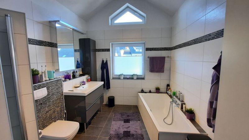 - Bad obere Etage mit Wanne, ebenerdiger Dusche und deckenhoher Einbaubeleuchtung
